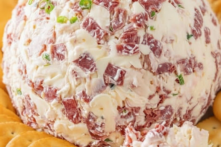 Creamed Chipped Beef Cheese Ball is a quintessential retro appetizer that captures the essence of mid-century American party food, blending creamy richness with savory, salty bites in a fun, shareable form that’s perfect for gatherings. This delightful cheese ball combines softened cream cheese with finely chopped dried beef, aromatic seasonings like Worcestershire sauce, garlic and onion powders, and fresh green onions for a pop of brightness, all shaped into a festive ball and chilled to perfection. Served with buttery Ritz crackers or other dippers, it offers a creamy, tangy spread with chewy, umami-packed beef pieces that evoke nostalgia while remaining irresistibly addictive. Ideal for holiday parties, game days, potlucks, or casual entertaining, this make-ahead treat requires minimal effort yet delivers maximum flavor, often disappearing quickly from the platter. Its roots in military and home cooking traditions make it a comforting classic, adaptable for modern palates with optional tweaks.