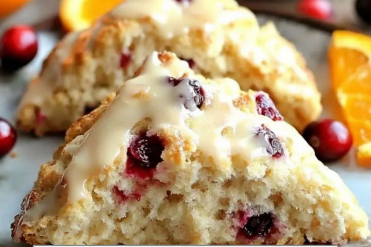 Cranberry-Orange Sour Cream Scones are among the most delightful and versatile baked goods in the modern pastry repertoire, offering a sublime combination of tender, flaky layers with vibrant bursts of tart cranberry and aromatic orange zest, all enriched by the subtle tang and exceptional moisture of sour cream. These scones strike a masterful balance: not too sweet like many American pastries, yet indulgent enough to feel like a treat, with a crisp golden exterior giving way to a soft, pillowy interior that stays fresh longer than traditional scones thanks to the sour cream’s natural tenderness. The dried cranberries provide chewy pockets of concentrated fruit flavor, while fresh orange zest infuses every bite with bright, citrusy lift that cuts through the buttery richness, creating a harmonious profile that’s equally at home alongside morning coffee, as part of an elegant afternoon tea spread, or as a festive addition to holiday brunch tables.