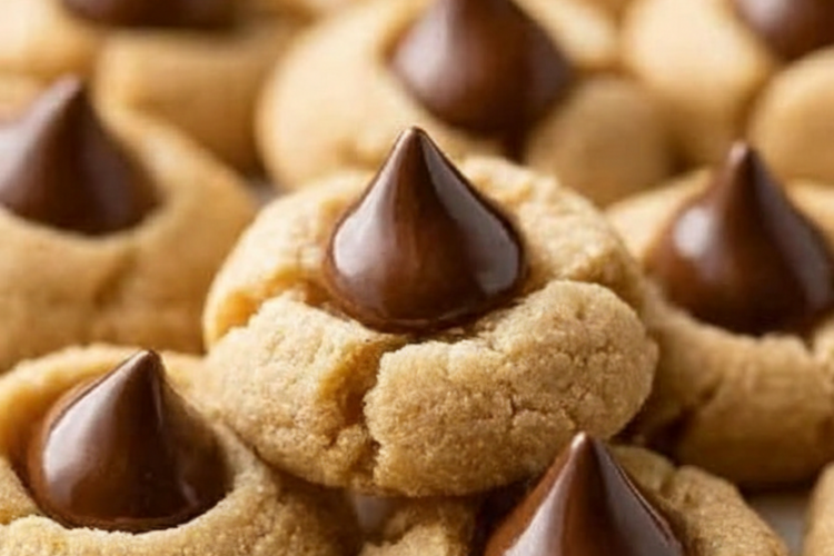 Peanut Butter Blossoms are a feast for the senses—visually striking with their cracked, golden surfaces crowned by a glossy chocolate Kiss that stands tall like a blossom in bloom. The cookies are soft and chewy with a tender crumb that melts on the tongue, releasing intense peanut butter flavor that’s nutty, slightly salty, and perfectly sweetened. The chocolate center provides a creamy, rich contrast, melting slightly to blend with the warm cookie in the first bite. Optional sugar coating adds a delicate crunch and sparkle. Aroma-wise, they fill the kitchen with toasty peanut butter notes during baking. Overall, they’re elegantly simple yet indulgent, with textures ranging from fudgy chocolate to pillowy dough.