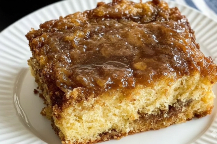 Beneath lies cake that’s almost custard-like from the pineapple juice, staying incredibly soft and flavorful even days later. The poured icing creates a glossy sheen, adding buttery richness that permeates every bite without overwhelming. Served warm, it’s comforting and gooey; cooled, the topping firms for easy cutting.