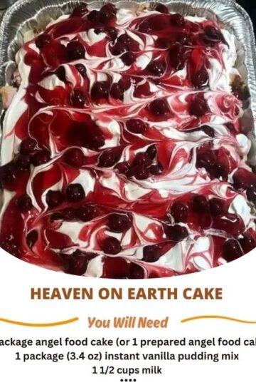 Introduction This Heaven on Earth Cake is a no‑bake layered dessert that combines light, fluffy angel food cake with a creamy vanilla pudding mixture and tangy cream cheese. Often finished with cherry pie filling or another fruit topping, it’s a dessert that looks impressive but is surprisingly easy to assemble. Perfect for potlucks, holidays, or […]