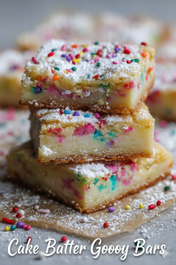 Introduction Cake Batter Gooey Bars are a playful, indulgent treat that tastes like biting into raw funfetti cake batter—only fully baked, ultra-gooey, and safe to devour. A buttery yellow cake mix crust forms the sturdy base, topped with a thick, creamy layer of sweetened cream cheese studded with rainbow sprinkles that burst with color and […]