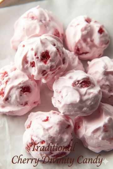 Introduction Traditional Cherry Divinity Candy is a ethereal Southern heirloom confection—glossy, snow-white mounds that dissolve into airy sweetness on the tongue, studded with vibrant maraschino cherries for bursts of fruity joy. This old-fashioned treat achieves its signature cloud-like texture through precisely cooked sugar syrup folded into whipped egg whites, resulting in a melt-in-your-mouth delicacy that’s […]