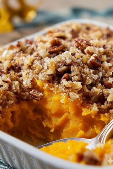 Introduction The Ruth’s Chris–Style Sweet Potato Casserole stands as an iconic side dish that transforms humble sweet potatoes into a luxurious, indulgent masterpiece, perfectly balancing creamy sweetness with a crunchy, buttery pecan topping. This casserole features a velvety smooth base of mashed sweet potatoes enriched with butter, sugar, eggs, and vanilla, crowned by a crisp […]