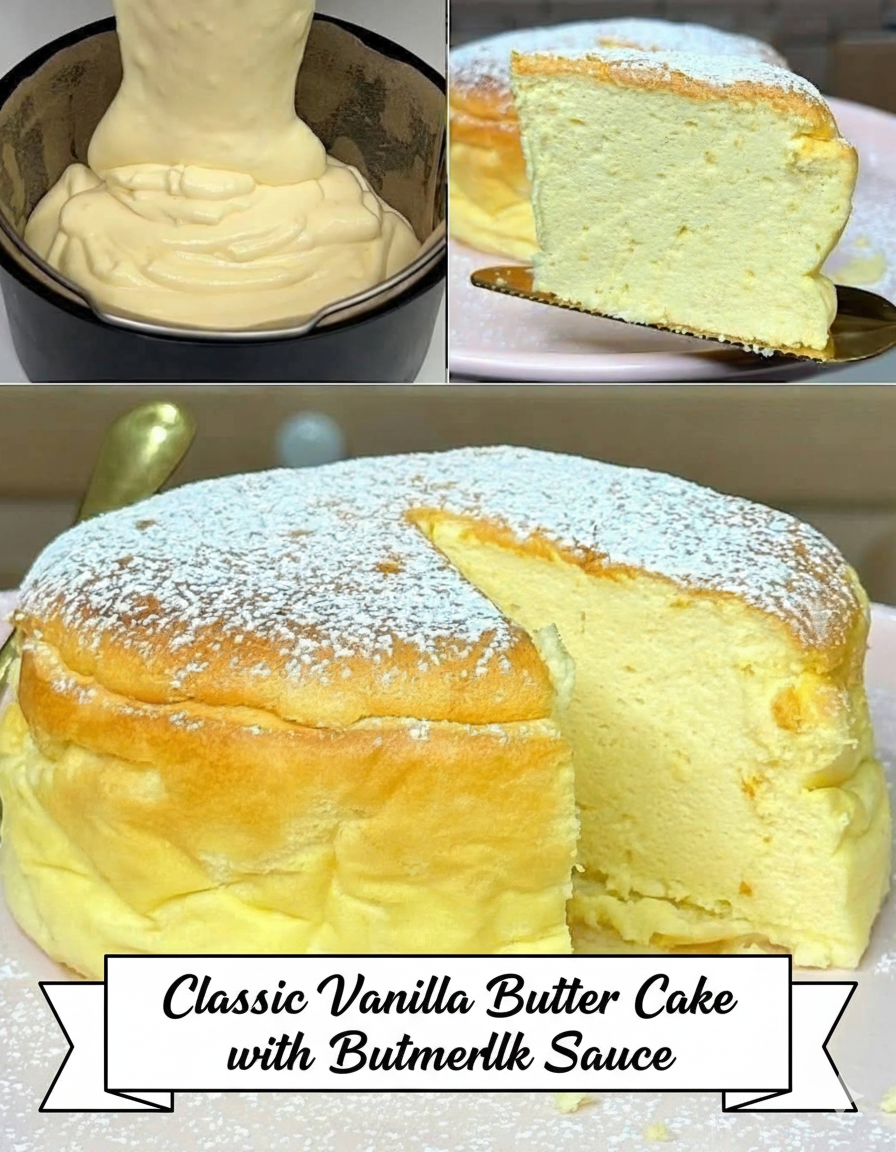 Classic Vanilla Butter Cake with Buttermilk Sauce