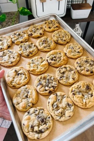 Ingredients: Instructions: 1. Cream the Butter & Sugars In a large mixing bowl, cream together the softened salted butter, granulated sugar, dark brown sugar, and light brown sugar. Beat until light and fluffy—about 2–3 minutes with an electric mixer. This creates the base of that perfectly chewy texture. 2. Add Eggs & Vanilla Crack in the 2 eggs, one at a time, […]