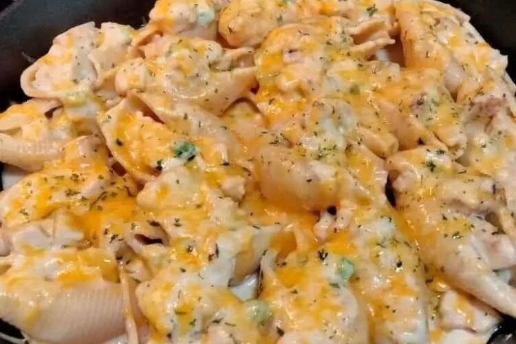 Picture the holiday table: a bubbling dish of stuffed shells at the center, golden cheese stretching with every scoop. The Alfredo sauce is creamy and garlicky, the chicken filling hearty, and the pasta shells perfectly tender. It’s the kind of dish that disappears quickly, leaving only smiles and requests for seconds.