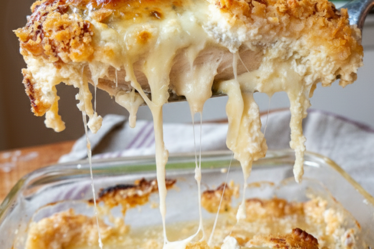 This dish combines everything people love in comfort chicken recipes: juicy meat that stays moist thanks to the creamy topping, gooey cheese that melts beautifully, and a crunchy, buttery cracker crust that bakes to golden perfection. Unlike dry baked chicken breasts, the mayo-sour cream mixture acts as both a flavor booster and a moisture lock, while the provolone adds that classic cheesy pull. The Ritz topping gives a satisfying crunch that contrasts the creaminess underneath.