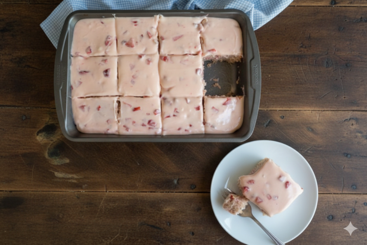 In American kitchens, sheet cakes like this one are beloved for their no-fuss nature—they feed a crowd without needing fancy layers or decorations. This strawberry version draws from classic Southern recipes, where fresh berries shine in simple desserts. It’s popular for its balance of sweet and tart, making it a hit at family reunions, church potlucks, or even as a weeknight treat. Unlike denser pound cakes, this one’s light enough for summer but comforting year-round.