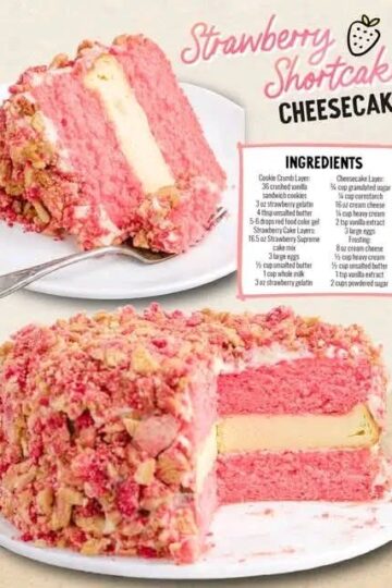 This Strawberry Shortcake Cheesecake is the ultimate dessert mash-up: rich, creamy cheesecake layered with moist strawberry cake and topped with a nostalgic cookie crumb coating. It’s a show-stopping treat that combines the best of strawberry shortcake and cheesecake into one irresistible slice. Perfect for birthdays, holidays, or anytime you want to impress! Ingredients For the […]