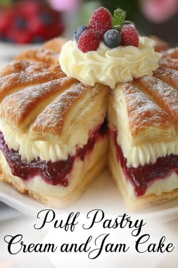 This Puff Pastry Cream and Jam Cake is a showstopper dessert that combines flaky, golden puff pastry with a rich, creamy filling and a sweet layer of jam. Topped with fresh berries and a dollop of whipped cream, it’s a decadent treat that’s perfect for special occasions, afternoon tea, or any time you want to […]