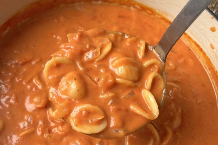 Orecchiette Pasta: Its little cups hold soup beautifully, but small shells or elbow macaroni work too.