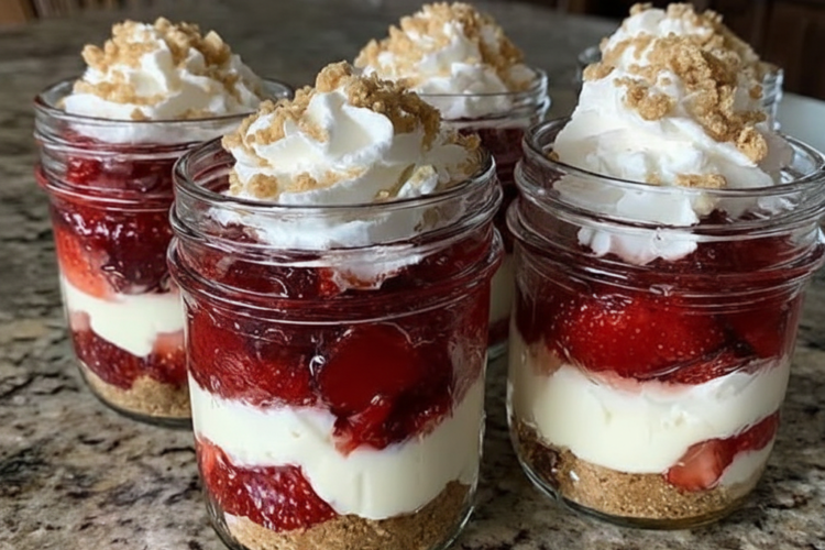 Strawberry Cheesecake Jars prove that healthy desserts can be indulgent, beautiful, and convenient. With creamy layers, fresh strawberries, crunchy granola, and natural sweetness, this dessert satisfies cravings without guilt.