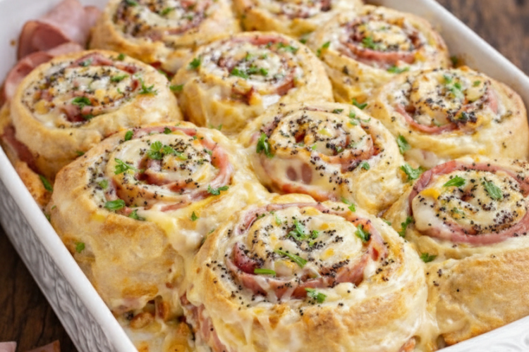 Whether you’re hosting a party, preparing game-day snacks, packing lunchbox treats, or looking for a quick family snack, these pinwheels deliver every time. They combine flaky crescent dough, smoky ham, creamy Swiss cheese, and a flavorful buttery glaze that makes them completely irresistible.