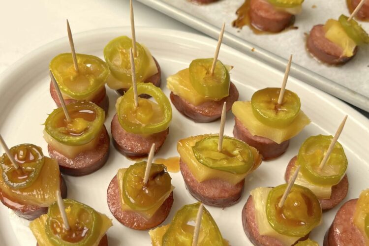 The caramelized glaze is what truly elevates these stackers from simple to unforgettable. The brown sugar and pineapple juice create a glossy coating that clings to the sausage, while the jalapeño brine cuts through the sweetness for balance.