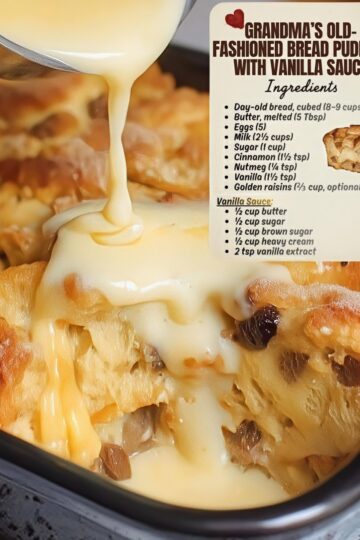 🍞 Grandma’s Old-Fashioned Bread Pudding with Vanilla Sauce A timeless comfort dessert straight from the heart of the kitchen 🌟 Introduction There’s something magical about bread pudding — the way simple ingredients come together to create a rich, comforting dessert that feels like a warm hug. This old-fashioned recipe has been passed down through generations, made with […]