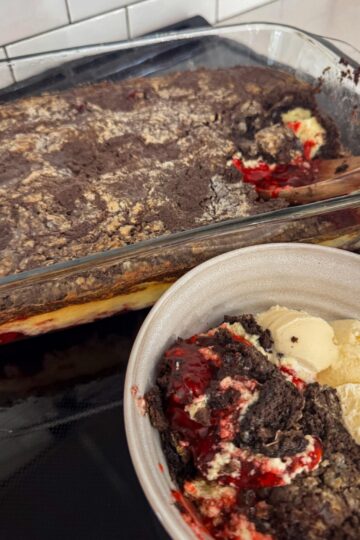 Strawberry Cheesecake Chocolate Dump Cake