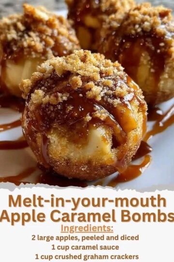 Melt‑in‑Your‑Mouth Apple Caramel Bombs Introduction If you’re looking for a dessert that’s cozy, gooey, and downright irresistible, these Apple Caramel Bombs are it. Imagine tender apples tossed with cinnamon, layered with buttery graham cracker crumbs, drizzled with caramel, and baked into golden little bombs of flavor. They’re warm, sticky, nutty, and melt in your mouth […]