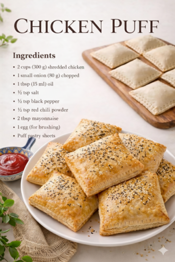 🥐 Chicken Puff – Flaky, Creamy & Golden There’s something irresistible about breaking into a warm, golden Chicken Puff and watching delicate layers of pastry shatter into crisp, buttery flakes. Inside? A creamy, savory chicken filling seasoned just right, wrapped in perfectly baked puff pastry that’s crisp on the outside and soft in the center. […]