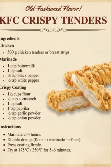 🍗 Old-Fashioned Crispy Chicken Tenders (KFC-Style) If you’ve ever craved that perfectly crispy, juicy, golden fried chicken tender that cracks when you bite into it, this Old-Fashioned Crispy Chicken Tenders recipe is exactly what you need. Inspired by classic Southern kitchens and the famous KFC-style crunch, these tenders deliver unbeatable flavor and texture right from […]