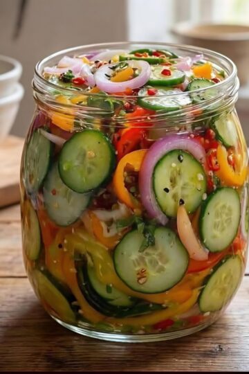 Zero Carb Pickled Cucumber, Onion & Bell Pepper Salad