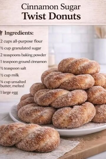 Cinnamon Sugar Twist Donuts Introduction These Cinnamon Sugar Twist Donuts are soft, golden, and swirled with sweet cinnamon joy. Perfect for breakfast, brunch, or a cozy afternoon treat, they combine the comfort of homemade dough with a crisp coating of cinnamon sugar. The twisted shape makes them extra fun and ensures every bite is packed […]