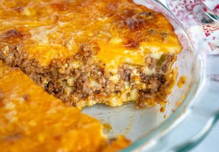 This clever recipe became popular decades ago when home cooks discovered that Bisquick could create a self-forming crust when baked with eggs and milk. The result is a comforting casserole-style meal with layers of flavor and minimal effort.