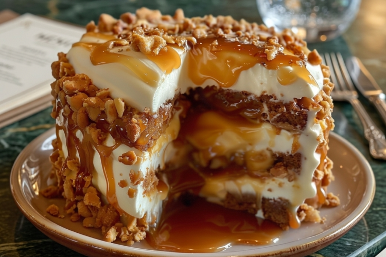 The Caramel Crunch Cake is a masterpiece of textures and flavors, combining the moistness of a classic cake with the crunch of caramelized nuts and the smoothness of a rich caramel sauce. As you take your first bite, the aroma of caramel and toasted nuts fills the air, teasing your senses and leaving you wanting more. This cake is a perfect treat for any occasion, whether it’s a birthday, anniversary, or just a sweet indulgence.